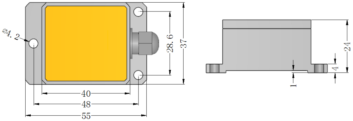 The default is to install horizontally upward: During installation, the sensor installation surface should be kept parallel to the measured target surface; please refer to the rotation diagram for the installation method. If other installation methods are required, please refer to the schematic description of "Product Installation Method" and make a note when ordering.