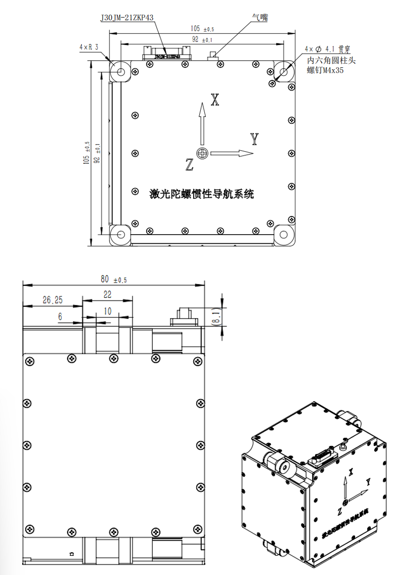 The core inertial sensor of the RU1000 laser gyro inertial navigation system is composed of a three-axis 30-type laser gyro combined with a three-axis quartz flexible accelerometer. It mainly includes: secondary power supply, navigation computer, current-frequency conversion circuit, gyro control board, gyroscope, accelerometer, and mechanical structure.