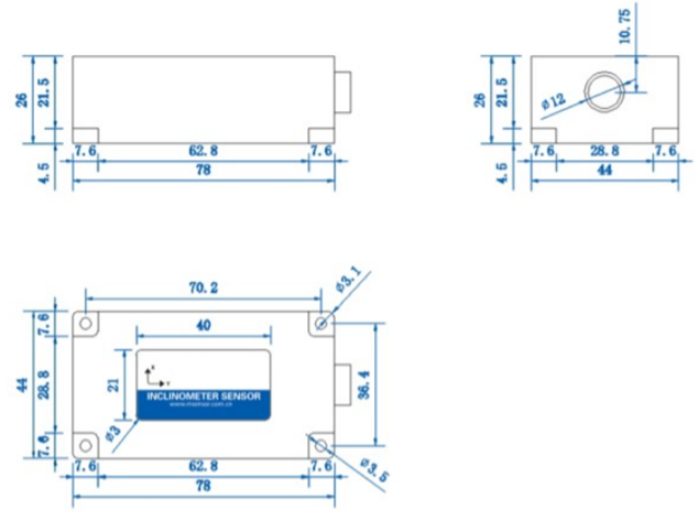 T70-FA is a high-precision 0.01°, small size, low power consumption, high consistency and stability, dual axis 4-phase and 4-way tilt switch launched by Micro-Magic Inc Hi-Tech Company. The working temperature reaches industrial grade -40 ℃ -85 ℃, and the alarm threshold of the switch action point is calibrated at the factory. It is equipped with computer debugging software, and the switch action point and trigger delay time can be set by the user. The product is designed with precision, compensating for temperature and linearity again, integrating comprehensive protection functions such as short circuit, instantaneous high voltage, polarity, surge, etc.