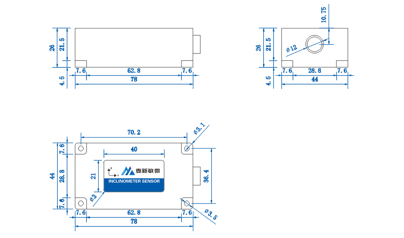 The T7000-C series is a high-performance current output dual-axis tilt sensor. The measurement range is dual axis ± 90 ° with a maximum accuracy of 0.008 °. It can output standard 4-20mA, 0-20mA, and 0-24mA analog currents, with RS232 and RS485 options available simultaneously. Good anti-interference characteristics, suitable for long-distance signal transmission. The product is easy to install and use, with multiple output options, resistant to external electromagnetic interference, and strong ability to withstand vibration and impact, suitable for measuring angles in industrial control environments such as surveying and mapping.