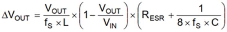 If the capacitor used is an MLCC (Multi-Layer Ceramic Capacitor), its ESR is negligible due to its very low value. Therefore, based on the input/output voltage, switching frequency, and target ripple, the capacitance can be calculated using the following formula: