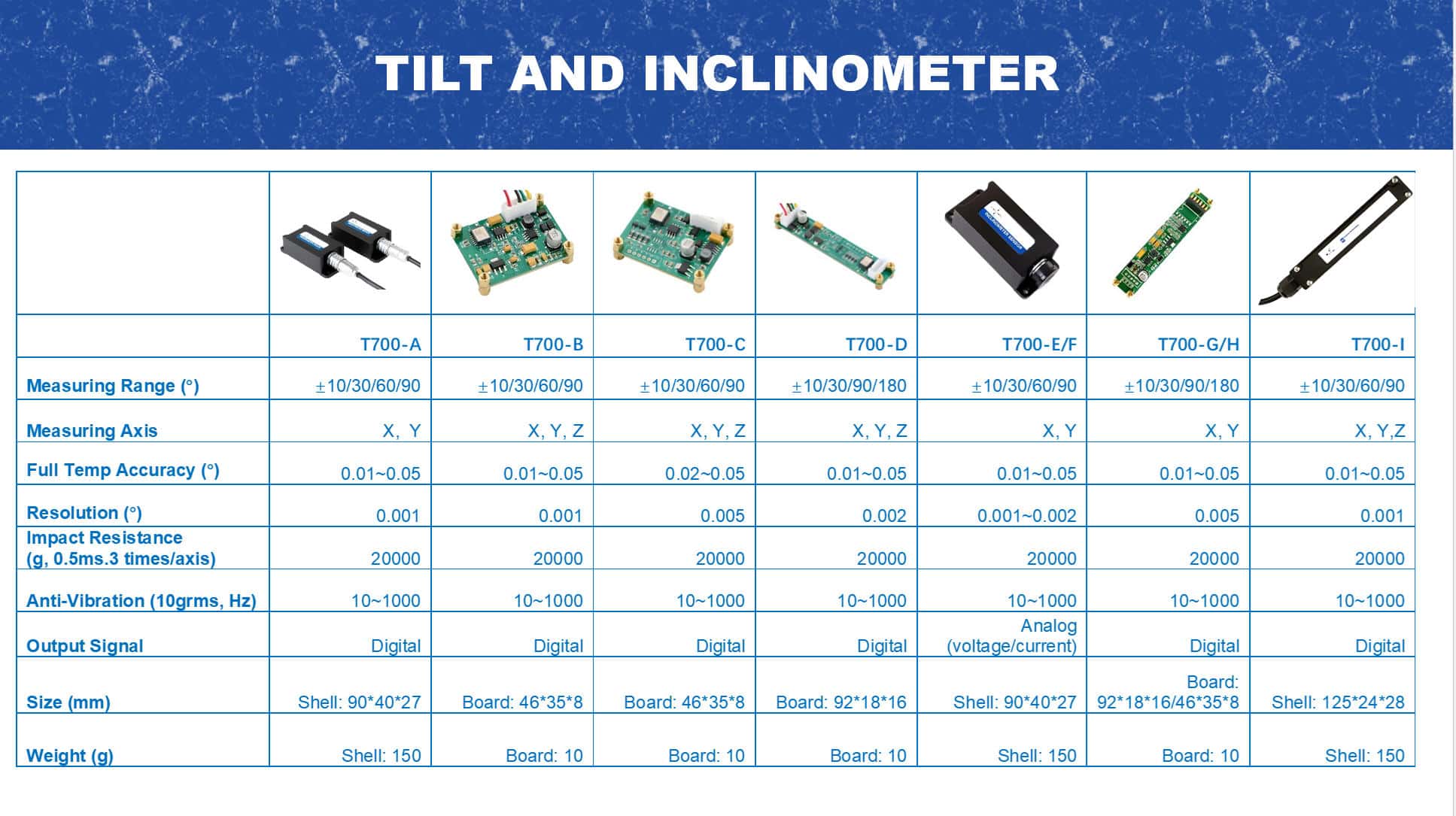 The T700-H series is a digital output dual axis tilt sensor, equipped with a high-precision 16bit A/D converter and outputs the dual axis tilt value through an n-order filtering algorithm. The output interfaces RS232, RS485, RS422, TTL, Modbus, and CAN bus are optional. The product can correct sensor temperature drift based on the monitoring temperature changes of the built-in temperature sensor, ensuring the repeatability of the product in low and high temperature environments. Output the corresponding frequency of 100Hz.